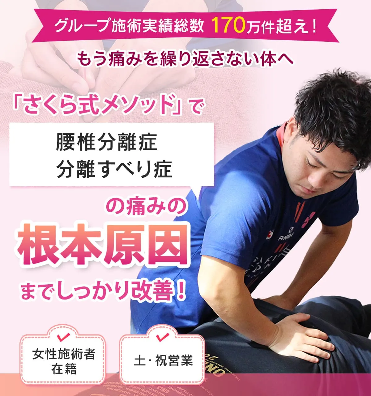 当院での腰椎分離症、すべり症の通院の目安として1〜5回の施術で緩和される方が多いですが重症の場合は数ヶ月から半年程度の施術で症状は改善されます。